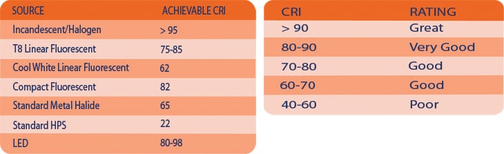 CRI is also an indicator of how "natural" an object's color appears when illuminated (Figure 1.) These are the highest achievable CRI values for common light sources. The lighting community tends to use CRI as an indicator of quality, or preference, even though it was not necessarily intended for this purpose. Light sources with dramatically different spectral power distributions can have identical color points yet render colors very differently.