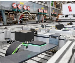 Figure 5: A NearFi coupler for contactless data transmission installed on each workpiece carrier enhances power and data reliability at each station. (Source: Phoenix Contact)